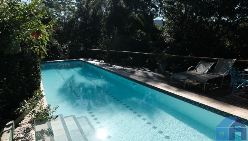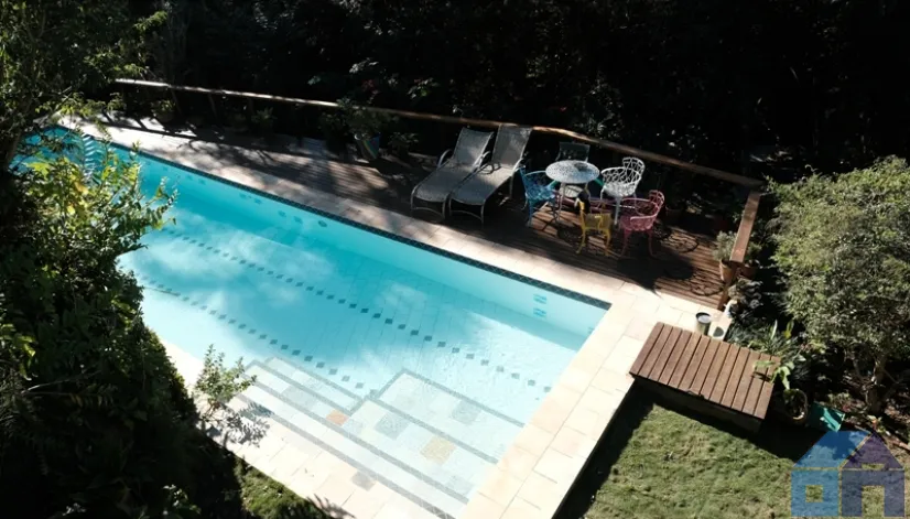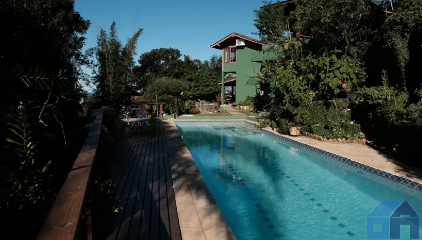 CASA 1, CONTEM 02 SUÍTES, 3 BANHEIROS, SALA DE LEITURA /ESTAR E JANTAR, BIBLIOTECA, COZINHA, ÁREA DE SERVIÇO, PISCINA, DECK, VARANDA, E DEPÓSITO.