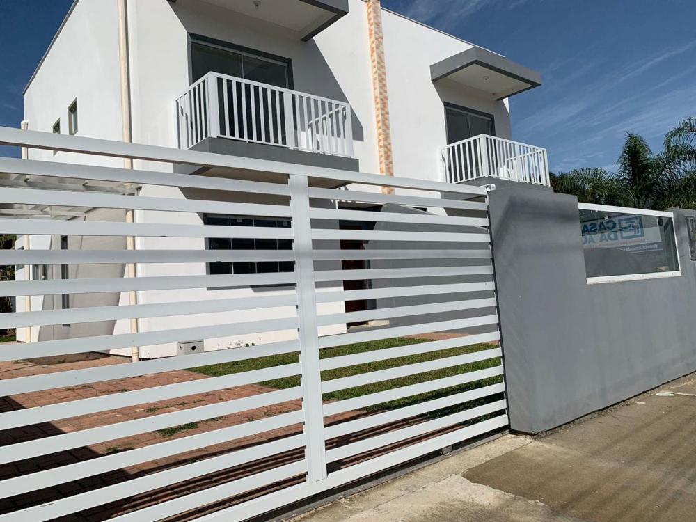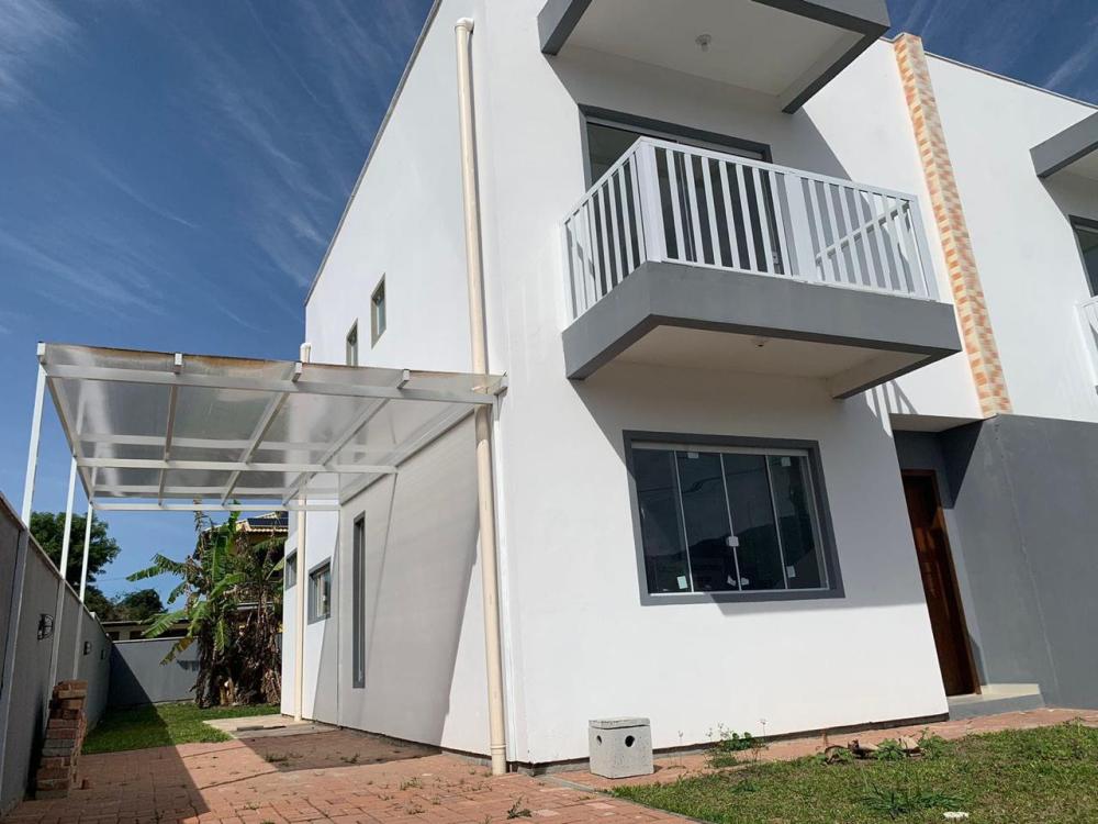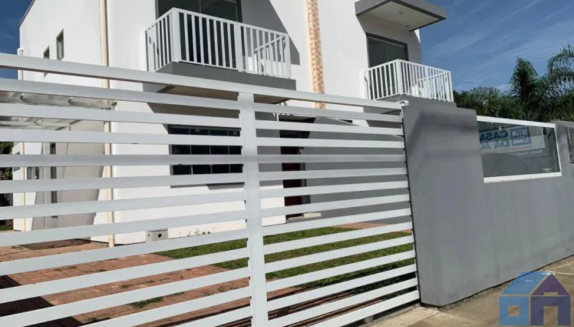 Sobrado com 109 m2 de área construída e 212 m2 de terreno(8x26,5). Cada imóvel possui duas suítes na parte superior. No piso térreo cozinha com sala integrada, lavabo, churrasqueira e lavanderia. Tudo em porcelanato, banheiros com box e pias de mármore. Garagem pra 2 carros. Jardim na frente e fundos.